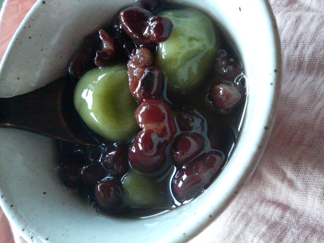 茹でていると綺麗な翡翠色の白玉に。